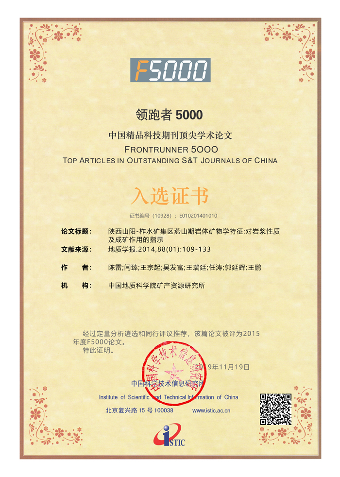 2019年度中国地质学会主办期刊多篇文章入选“精品期刊顶尖论文平台——领跑者5000”