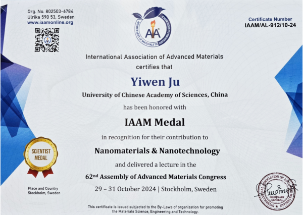 中国地质学会纳米地质专业委员会主任委员琚宜文获国际先进材料协会最高奖