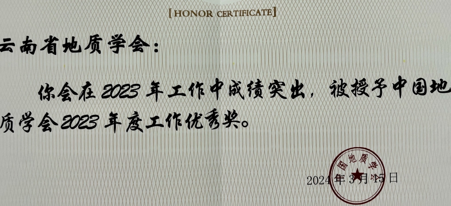 ? 云南省地质学会荣获“中国地质学会2023年度工作优秀奖” 2024-03-28