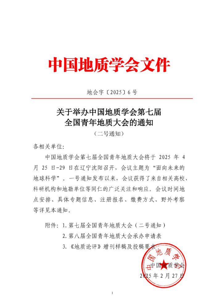 第七届全国青年地质大会的通知(二号通知)